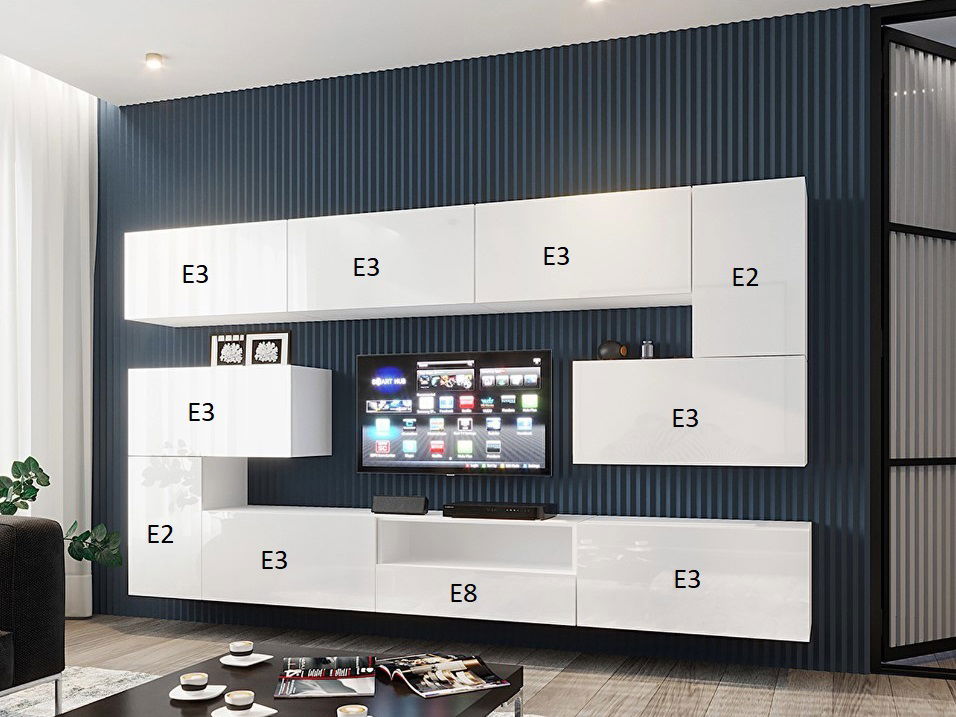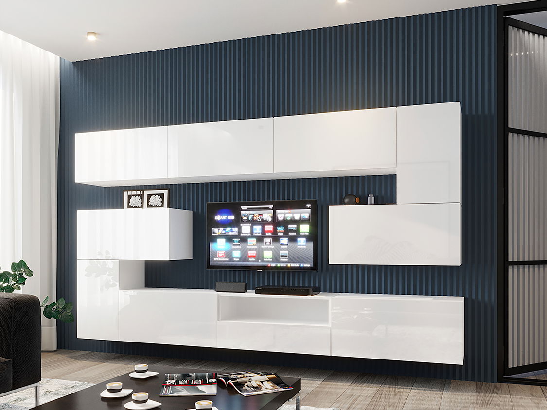 Obývací stěna Berny 57 (bílá + bílý lesk)