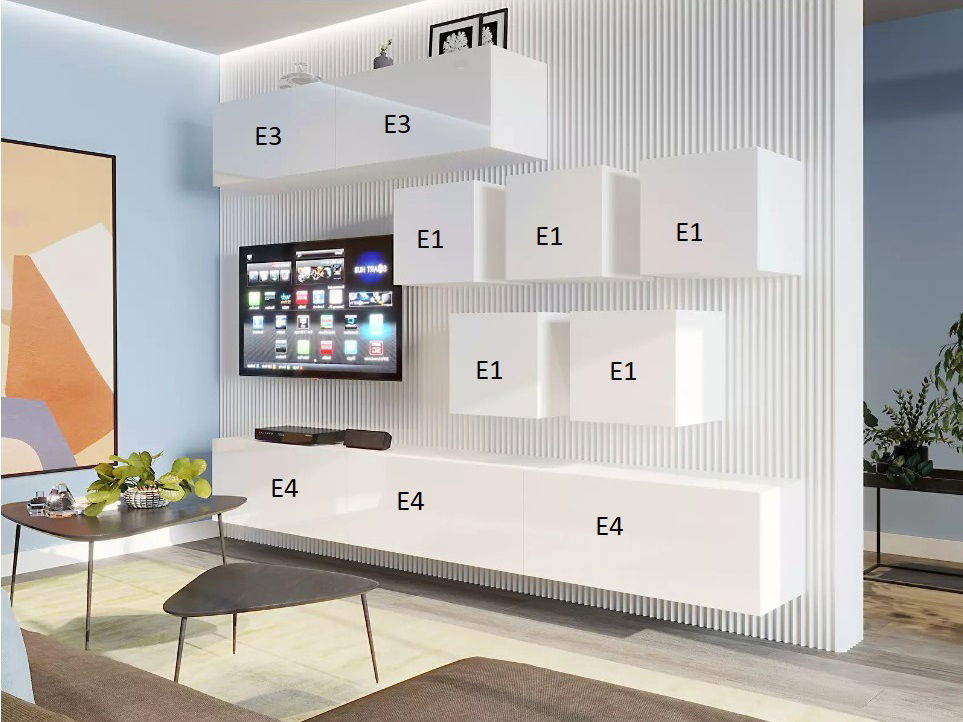 Bílá obývací stěna Berny je skvělou volbou do každého obývacího pokoje. Tato stěna kombinuje funkčnost a moderní vzhled do dokonalého celku. Všechna dvířka mají důmyslný PUSH-CLICK systém, který umožňuje snadné otevření a zavření. Tato sestava má také možnost zakoupení LED osvětlení, které dodá pokoji ještě více stylu. Obývací stěna Berny se může umístit na stěnu, čímž opticky zvětší prostor a přidá lehkost místnosti nebo na podlahu s pomocí nožiček. Materiál sestavy je MDF lakovaná pro přední části a dřevotříska o tloušťce 16 mm pro korpus. Způsob otevírání dvířek je PUSH TO OPEN.