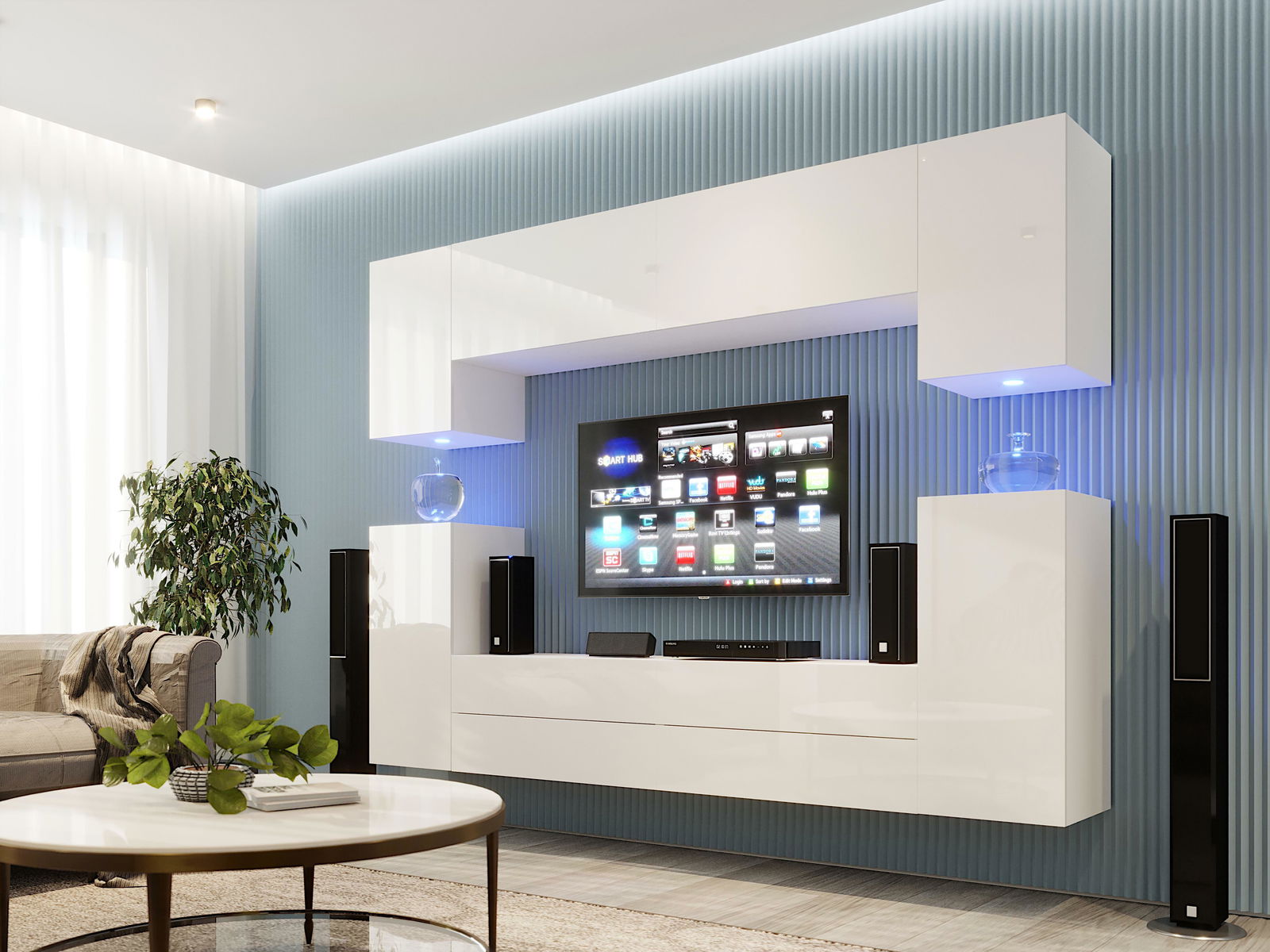 Obývací stěna Berny 69 (bílá + bílý lesk)