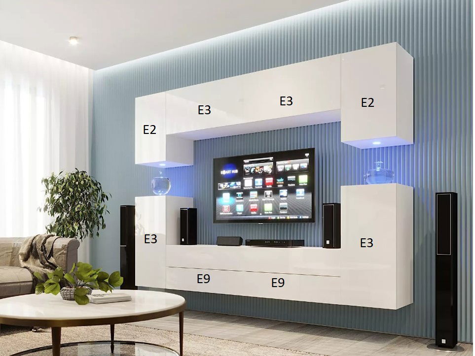 ZobrazitBílá obývací stěna Berny je skvělou volbou do každého obývacího pokoje. Tato stěna kombinuje funkčnost a moderní vzhled do dokonalého celku. Všechna dvířka mají důmyslný PUSH-CLICK systém, který umožňuje snadné otevření a zavření. Tato sestava má také možnost zakoupení LED osvětlení, které dodá pokoji ještě více stylu. Obývací stěna Berny se může umístit na stěnu, čímž opticky zvětší prostor a přidá lehkost místnosti nebo na podlahu s pomocí nožiček. Materiál sestavy je MDF lakovaná pro přední části a dřevotříska o tloušťce 16 mm pro korpus. Způsob otevírání dvířek je PUSH TO OPEN.