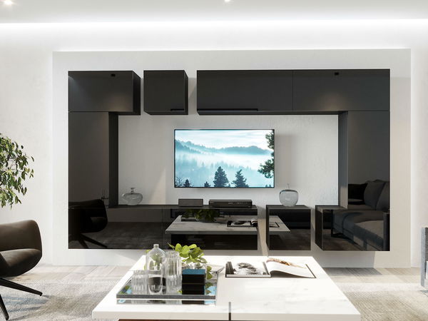 Obývací stěna Berny 71 (černá + černý lesk)