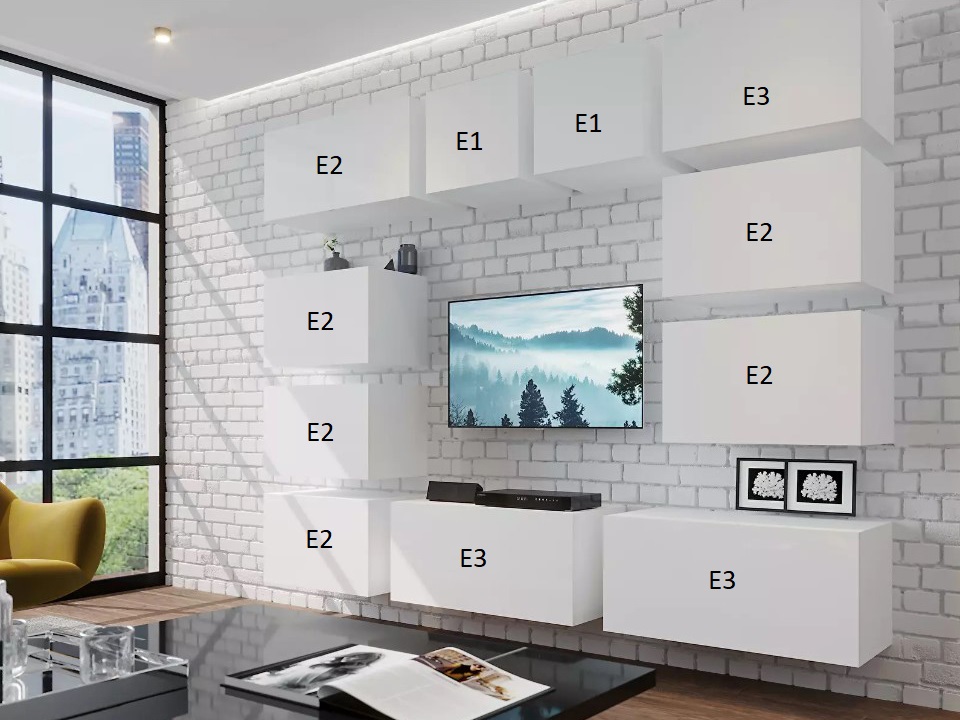 Obývací stěna Berny 75 (bílá + bílý lesk)