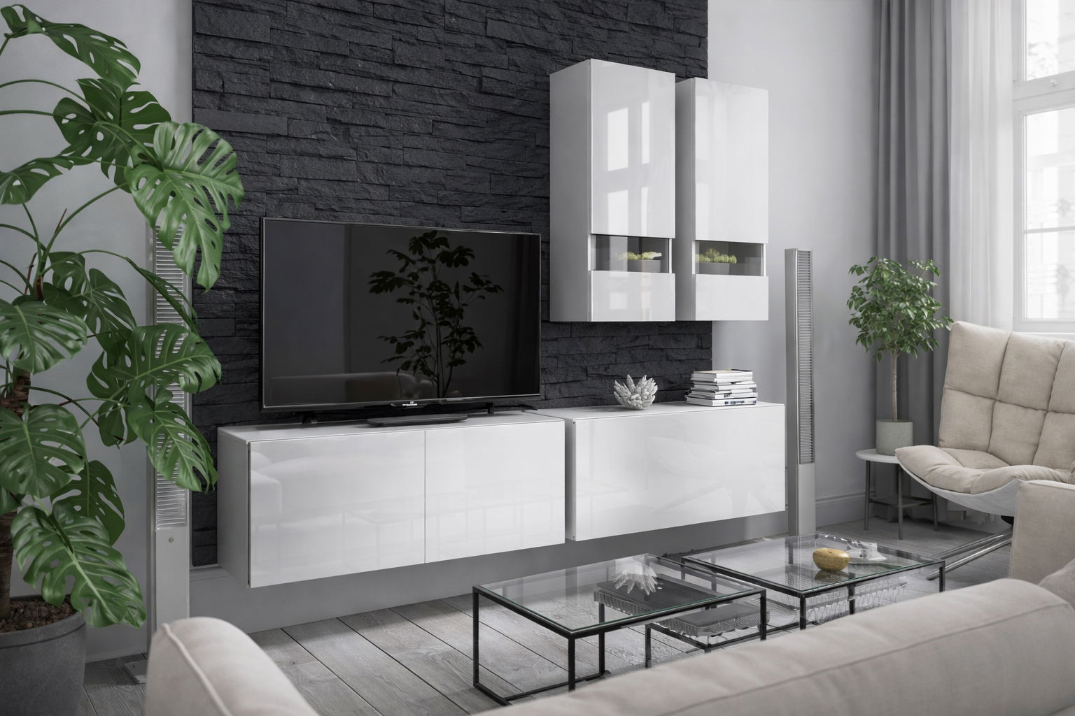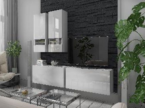 Obývací stěna Berny 9 (bílá + bílý lesk)