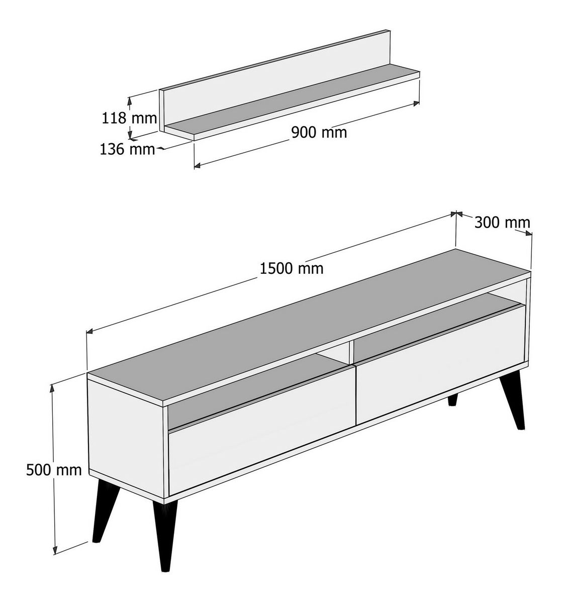 TV stolek rozměry: šířka: 150 cm výška: 50 cm hloubka: 30 cm