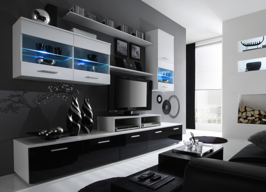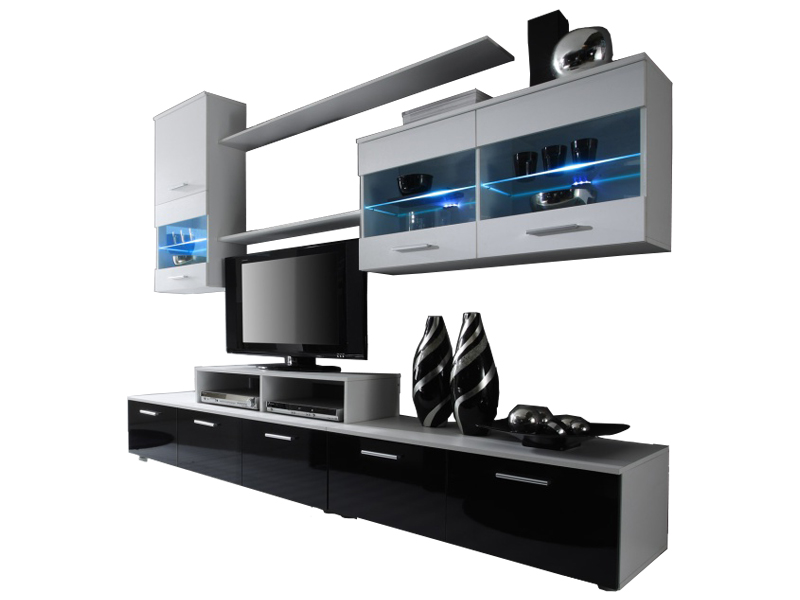 Obývací Stěna Beverley I (bílá + černá) (s osvětlením)