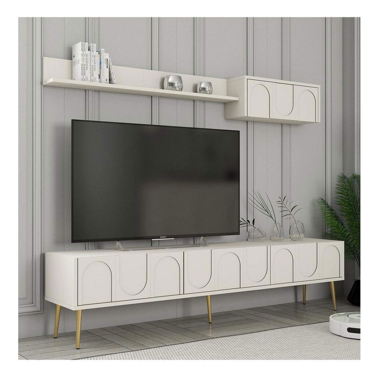 Obývací stěna Bipemu 4 (krémová + zlatá)