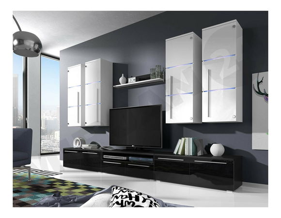 Obývací stěna Bridget (černá + černý lesk) (bílá + bílý lesk)