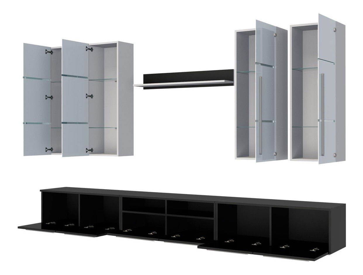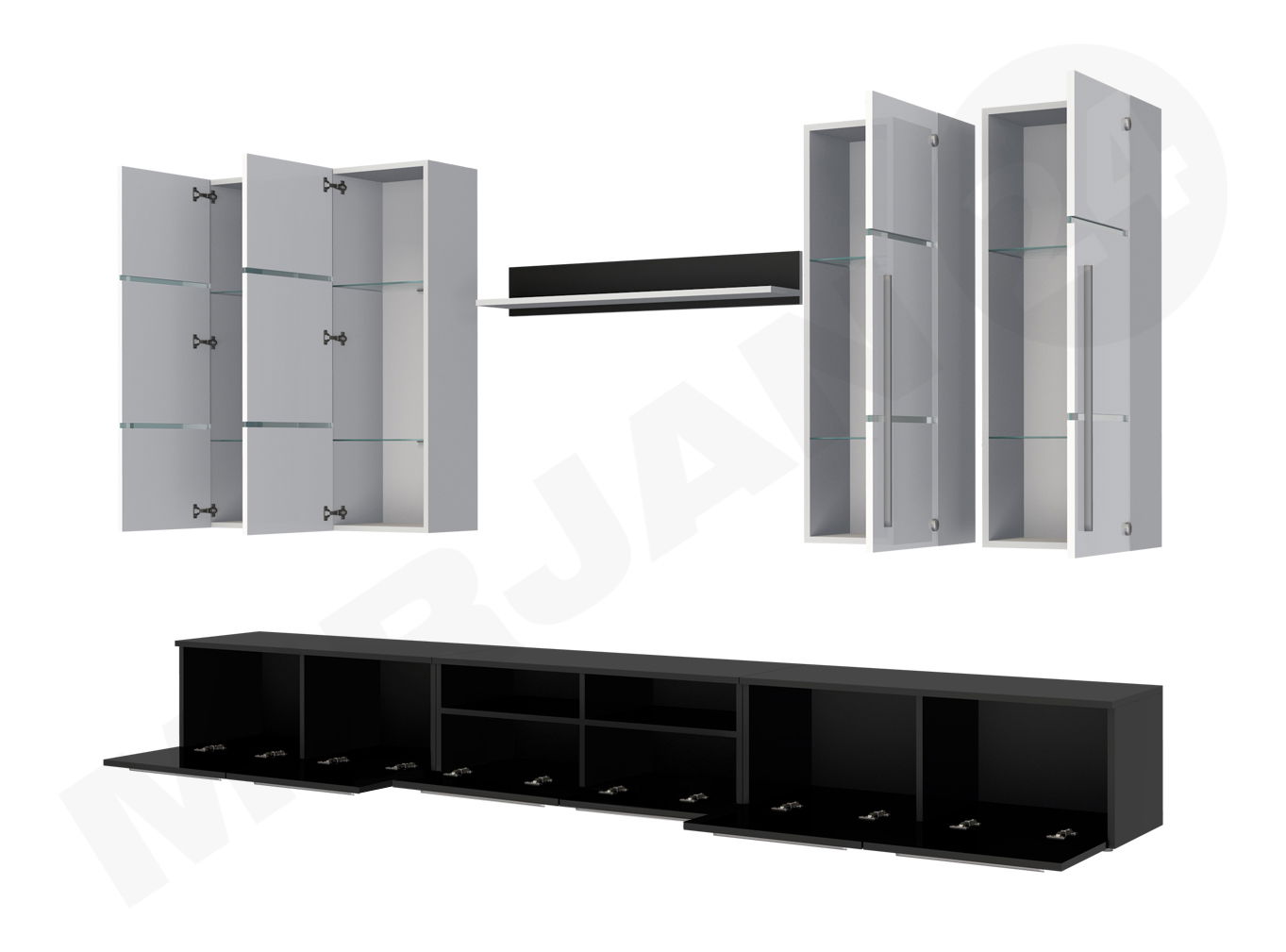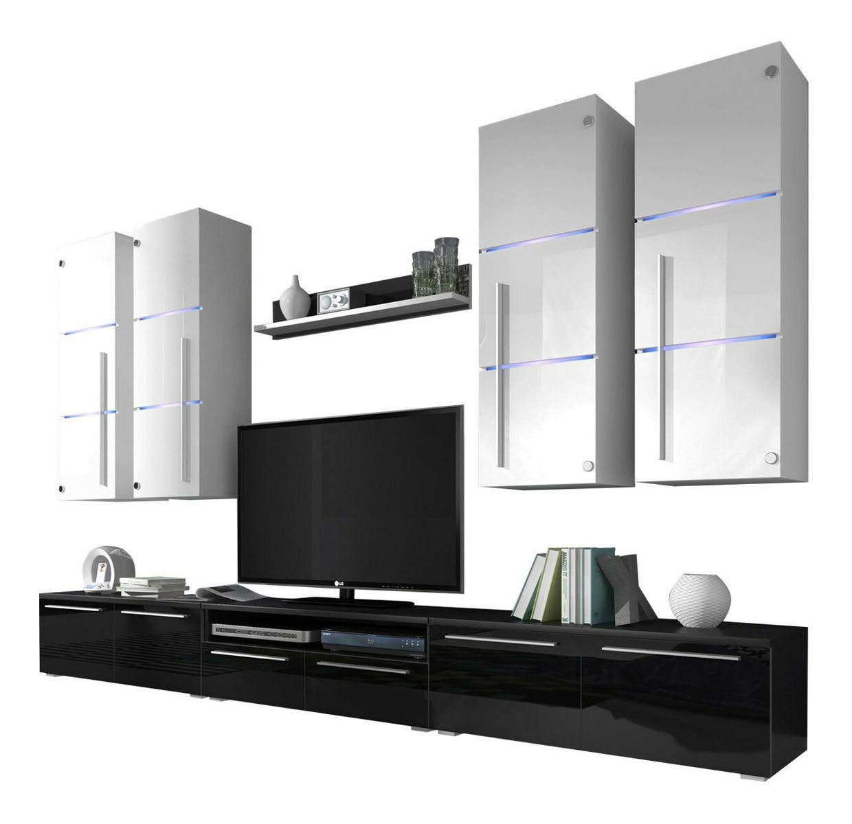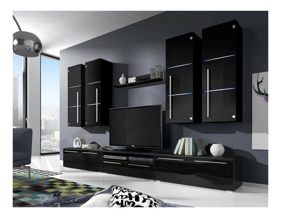 Obývací stěna Bridget (černá + černý lesk) (černá + černý lesk)
