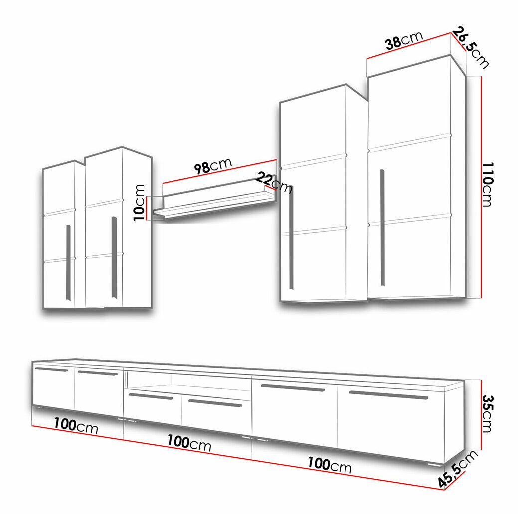 ZobrazitNástěnný obývací pokoj má moderní vzhled a praktické uspořádání skříněk. Lesklá čela místnost opticky zvětší a upoutají pozornost členů domácnosti. Součástí je LED osvětlení - vytváří příjemnou atmosféru při večerních setkáních. Nástěnná jednotka má přídavnou polici pod TV, určenou pro digitální dekodér a DVD přehrávač. V nabídce jsou čtyři barevné kombinace, ze kterých si můžete vybrat styl, který se nejlépe hodí do vašeho interiéru.