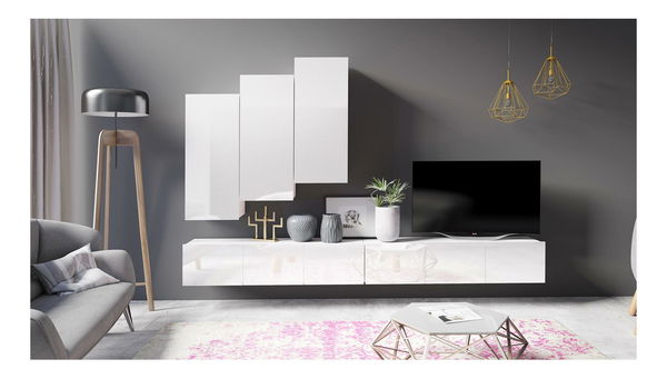 Obývací stěna Calabria 1 (bílá matná + lesk bílý)