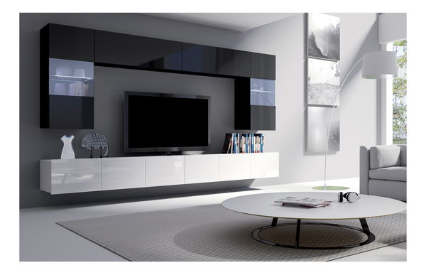 Obývací stěna Calabria C1 (Černý lesk + bílý lesk) (bez osvětlení)