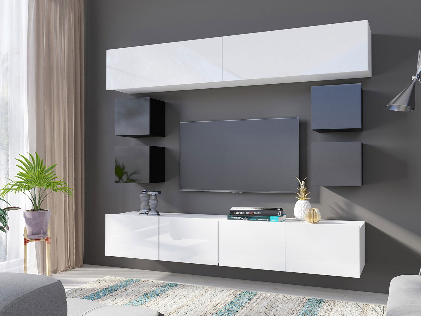 ZobrazitObývací stěna Calabria C16 (černý lesk + bílý lesk) je moderní nábytek do obývacího pokoje, který se skládá z 8 prvků. V sadě se nacházejí 2 poličky, 2 TV stolky RTV 100 a 4 závěsné skříňky KWADRAT, které vám poskytnou dostatek úložného prostoru pro váš domácí kinematograf. Materiál je kvalitní a ABS hrany zaručují dlouhou životnost. Rozměry poliček jsou 105x35x32 cm, rozměry TV stolku RTV 100 jsou 100x37x43 cm a rozměry závěsných skříněk KWADRAT jsou 34x34x32 cm. Obývací stěna Calabria C16 dodává vašemu domovu eleganci a moderní vzhled.