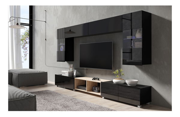 Obývací stěna Calabria C24 BLACK (černá + dub artisan) (bez osvětlení)