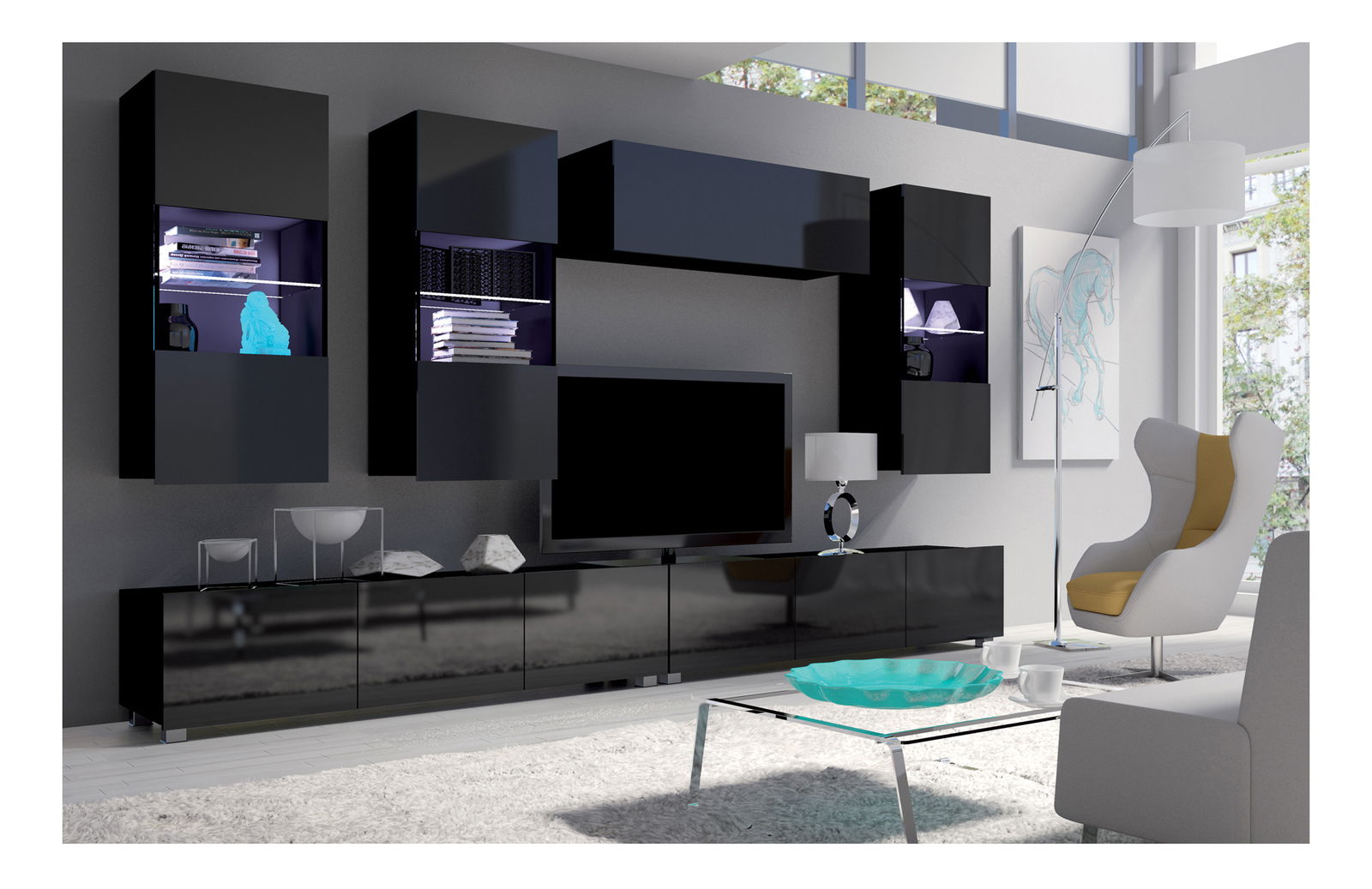 Obývací stěna Calabria C5 (černá) (bez osvětlení)