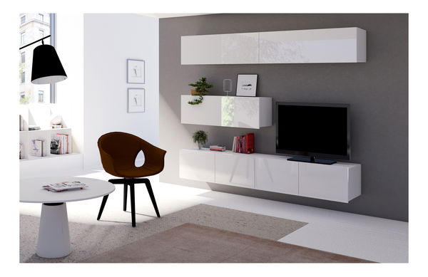 Obývací stěna Calabria C8 (bílý lesk) (bez osvětlení) je praktický a elegantní kousek nábytku, který se skvěle hodí do každého obývacího pokoje. Skládá se z 5 prvků, mezi nimiž jsou 3 poličky a 2 TV stolky RTV 100. Tyto prvky lze libovolně kombinovat a nastavit podle vašich potřeb a preferencí. Materiál, ze kterého je obývací stěna vyrobena, je kvalitní a odolný. Kromě toho, ABS hrany zajišťují vysokou odolnost a trvanlivost nábytku. Rozměry poliček jsou 105x35x32 cm, zatímco rozměry RTV stolku 100 jsou 100x37x43 cm. Celková bílá lesk barva této obývací stěny zaručuje moderní a elegantní vzhled vašeho interiéru.