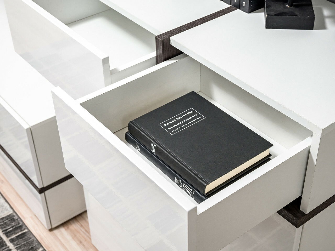 Obývací stěna Carlyn 28 PEW CS (bílá matná + jilm perlový + vysoký lesk bílý)