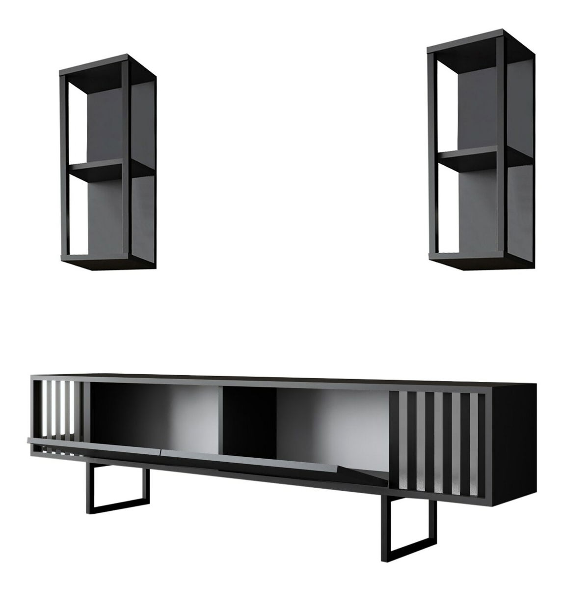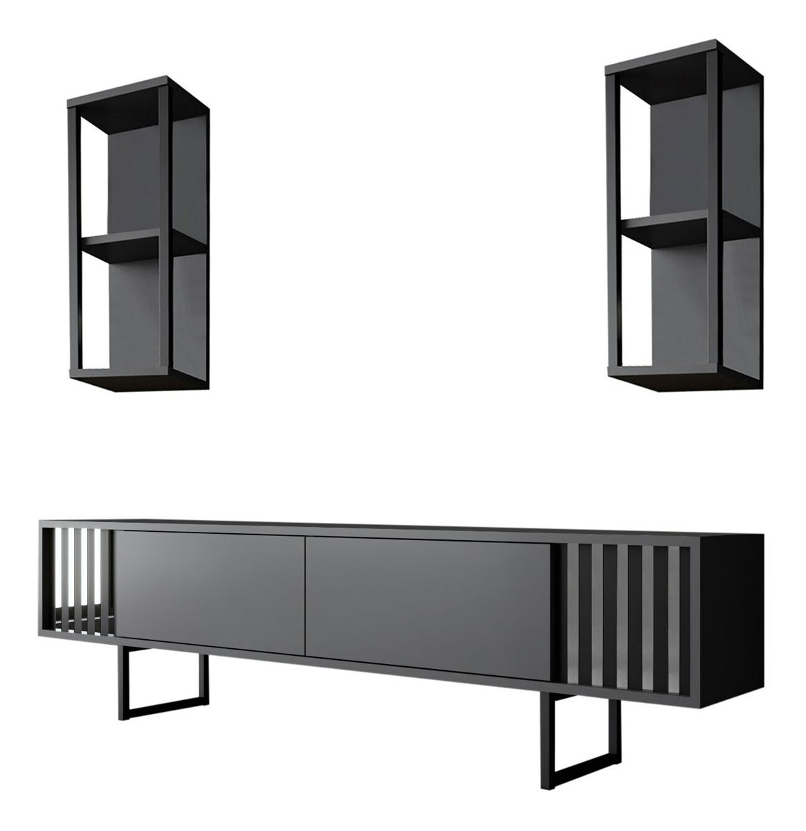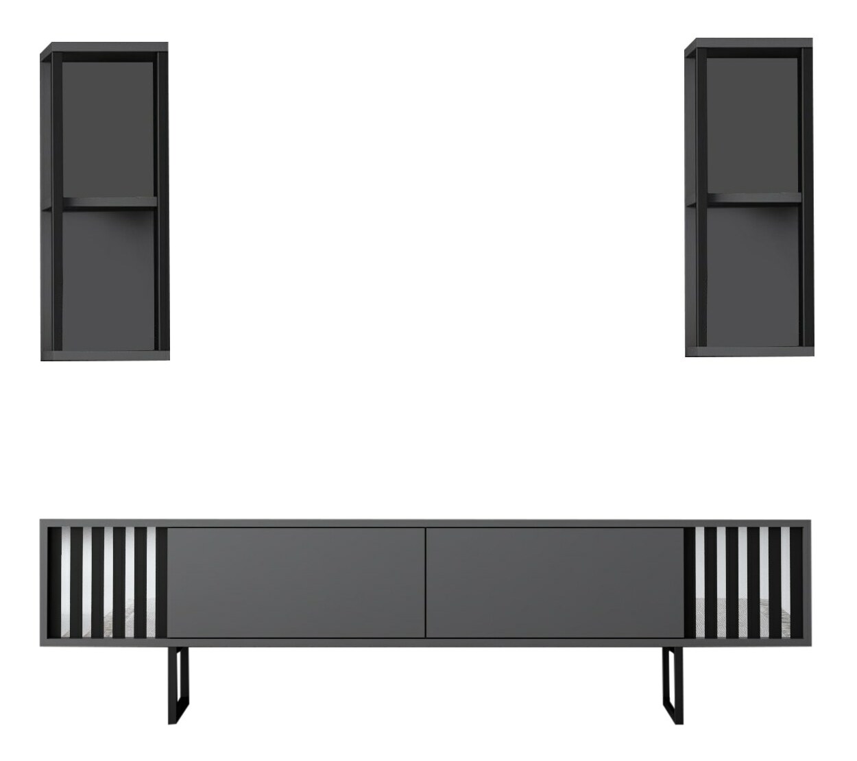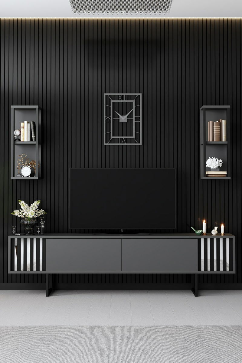 Obývací stěna - Chromatic (Antracit + Černá) je elegantní nábytek, který přinese do vašeho domova moderní a stylový vzhled. S výškou 48 cm, šířkou 180 cm a hloubkou 30 cm, tato stěna poskytuje dostatek úložného prostoru pro vaše cennosti a dekorace. Je vyrobena z kvalitního materiálu, který je odolný vůči poškrábání a opotřebení, což zaručuje její dlouhou životnost. Antracitová a černá kombinace barev dodává této stěně elegantní a sofistikovaný vzhled. Je ideální pro každý interiér a poskytuje optimální rovnováhu mezi funkčností a designem. S tímto produktem získáte nejen praktický nábytek, ale také stylový doplněk pro váš domov.