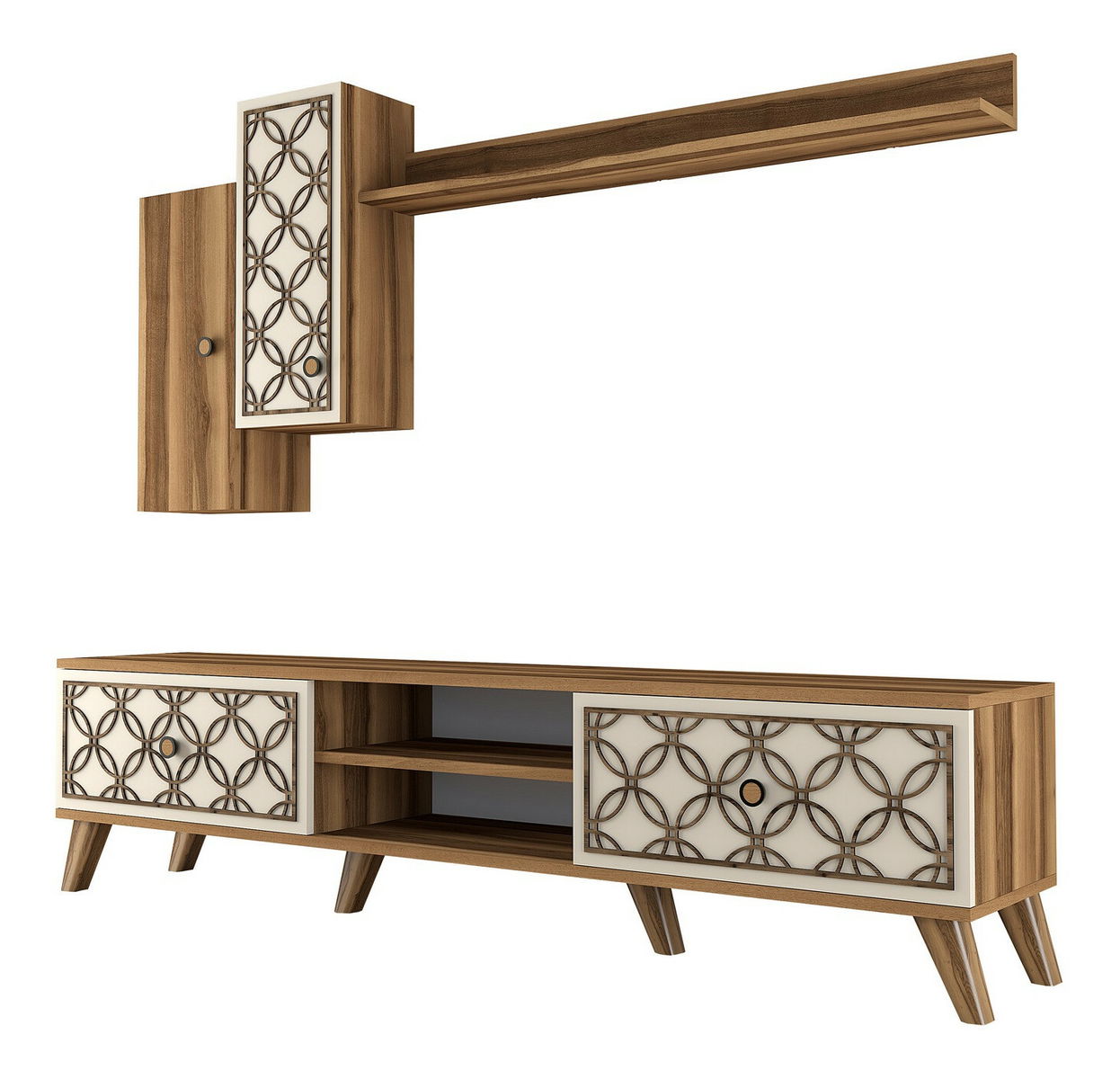 ZobrazitObývací stěna Clara (Ořech + Krémová) je moderní a elegantní nábytek vhodný pro váš obývací prostor S výškou 44 cm a šířkou 180 cm nabízí dostatek úložného prostoru pro vaše osobní věci, knihy a vybavení S hloubkou 35 cm se stává ideálním řešením i pro menší místnosti. Barevná kombinace dřeva v ořechovém odstínu a krémové barvy přidává stěně stylový a sofistikovaný vzhled Vykonstruovaná s kvalitním zpracováním a pevnou konstrukcí, tato obývací stěna Clara je určena pro ty, kteří si cení spojení elegance a funkčnosti ve svém interiéru.