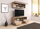 Tato jednoduchá, moderní obývací stěna bude zpestřením vašeho obývacího pokoje. Její součástí je TV stolek a polička. Je to obývací stěna, která je ideální i do menších interiérů. Získat ji můžete v barvě javor nebo javor-amari. Úchyty a nožky jsou zase v příjemném zlatém provedení. Najdete v něm dostatek úložného prostoru na vaše audio / video přehrávače nebo nosiče.