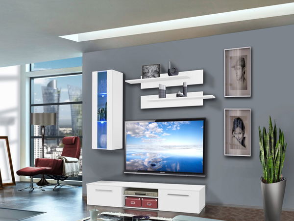 Jednoduchý a moderní design obývací stěny je doplněn o systém push-click, který je využit při vitríně. Obývací stěna je doplněna o LED podsvícení.