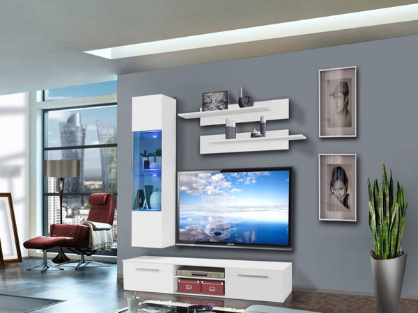 Jednoduchý a moderní design obývací stěny je doplněn o systém push-click, který je využit při vitríně. Obývací stěna je doplněna o LED podsvícení.