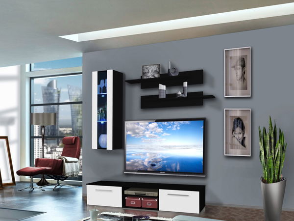Jednoduchý a moderní design obývací stěny je doplněn o systém push-click, který je využit při vitríně. Obývací stěna je doplněna o LED podsvícení.