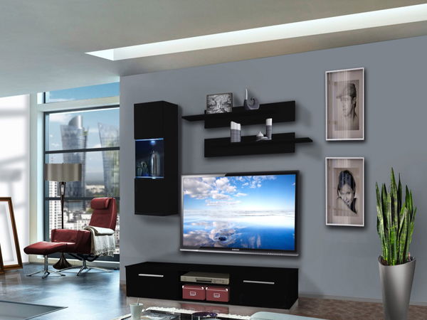 Jednoduchý a moderní design obývací stěny je doplněn o systém push-click, který je využit při vitríně. Obývací stěna je doplněna o LED podsvícení.