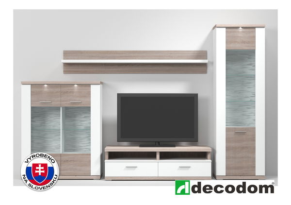 Obývací stěna Decodom Brooklyn Kombinace 01 (bílá arctic vysoký lesk + dub řezaný Bardolino)