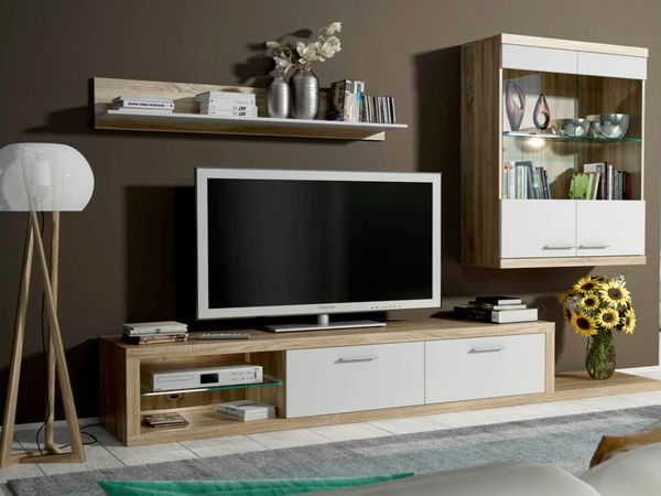 Obývací stěna Dolores P6D1DS (sonoma + bílá) (s osvětlením)