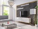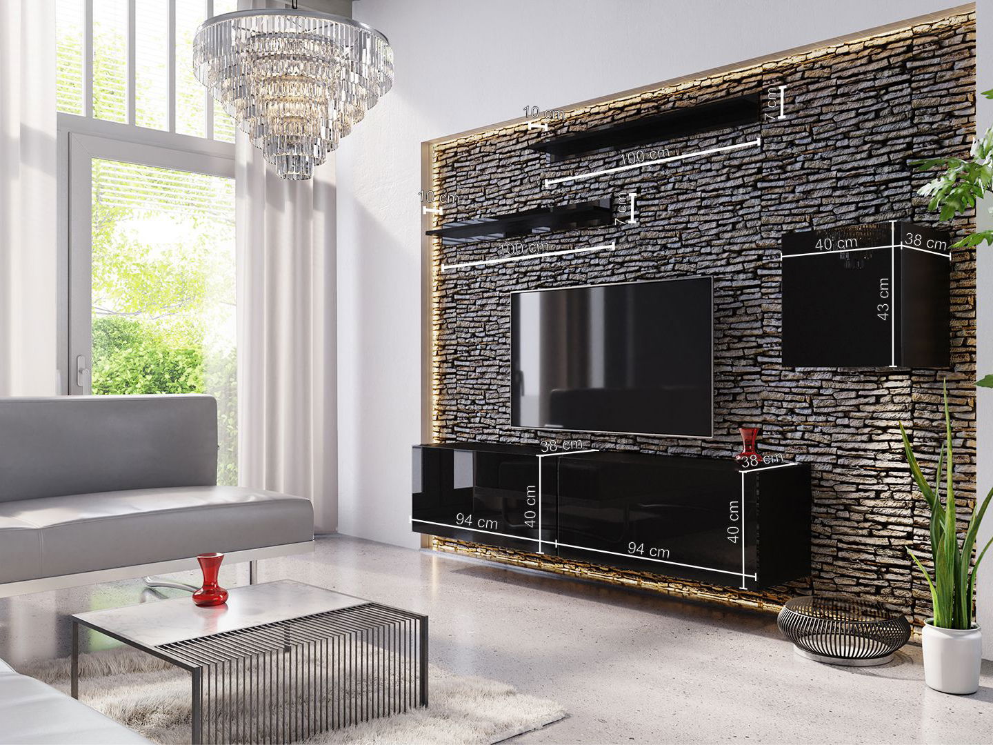 Obývací stěna Dopha je kombinací nejdůležitějších prvků v obývacím pokoji. Kromě funkčnosti obývací stěny je třeba věnovat pozornost i jejího vzhledu. Rozsáhlá paleta barev zdůrazňuje geometrické tvary jednotlivých skříní a jejich lesk vytváří dojem hloubky, která pozitivně koriguje optiku místnosti. Všechna dvířka se otevírají důmyslným PUSH-CLICK systémem, kdy stačí jemně zatlačit pro otevření nebo opětovné zavření dvířek. Tato obývací stěna má možnost doplnění o LED osvětlení, které dodá celku zajímavý, velmi moderní charakter. Nábytek má dvě možnosti montáže: můžete ji umístit na stěnu, opticky zvětšit prostor, přidat její lehkost nebo ji umístit na podlahu pomocí nožiček.