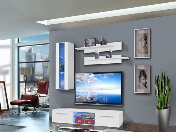 Jednoduchý a moderní design obývací stěny je doplněn o systém push-click, který je využit při vitríně. Obývací stěna je doplněna o LED podsvícení.