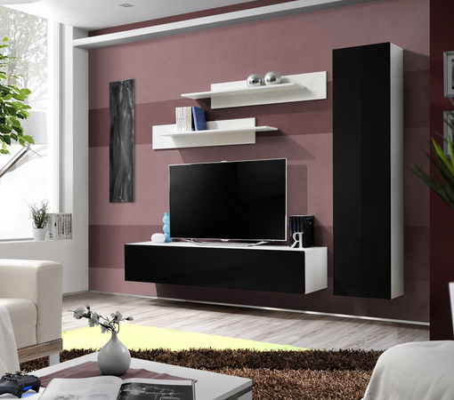 ZobrazitObývací stěna Ferryhill 23 WS FY G1 o výšce 190 cm a hloubce 40 cm v bílém provedení s lesklými černými detaily je ideálním řešením pro ty, kteří preferují moderní styl a jednoduchost. Všechny prvky jsou uchyceny na zeď a tak vytvářejí dojem volnosti prostoru. Uvnitř TV skříňky se nacházejí tři přihrádky a tři poličky i se skříňkami. Samostatné poličky na zeď si můžete umístit podle sebe, ale maximální nosnost jednoho kusu je 10 kg. Dvířka se otevírají pomocí užitečného PUSH-CLICK systému a dodávají jim stylový vysoký lesk. Svůj interiér můžete obohatit o tento elegantní kus nábytku s rozměrnými možnostmi: TV stolek 30 x 160 x 40 cm, skříňka 170 x 40 x 29 cm a polička 60 x 120 x 20 cm. Balení obsahuje tři balíky s rozměrnými parametry.