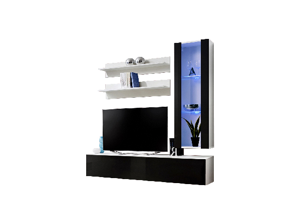 Obývací stěna Ferryhill 23 WS FY H2 (s osvětlením) v bílém a lesklé černé barvě je ideální volbou pro ty, kteří upřednostňují moderní a elegantní nábytek. Tento nábytek má všechny prvky uchycené na zeď, čímž vytváří dojem, že se vznáší ve vzduchu. Je snadno přístupný, což usnadňuje úklid. Uvnitř TV skříňky se nacházejí tři oddělení a vitrína obsahuje dvě skleněné poličky osvětlené LED osvětlením. Všechna dvířka mají inovativní PUSH-CLICK systém, který umožňuje snadné otevírání a zavírání dvířek. Fronty mají vysoký lesk a jednotlivé poličky můžete umístit podle sebe a zatížit maximálně 10 kg (na poličku). Balení obsahuje tři balíky s rozměrnou šířkou/výškou 141x43x8 cm/25 kg, 175x41x8 cm/29 kg a 112x23x9 cm/9 kg. Celková výška obývací stěny je 190 cm a hloubka je 40 cm.