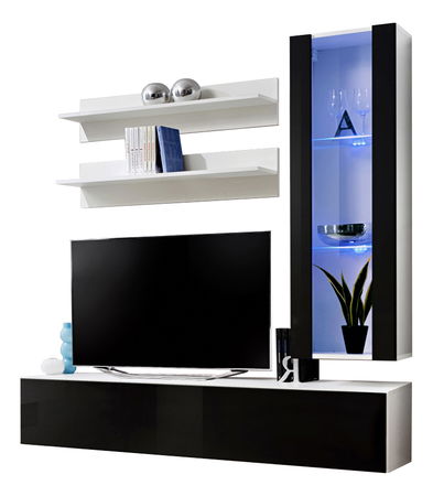 Obývací stěna Ferryhill 23 WS FY H2 (s osvětlením) v bílém a lesklé černé barvě je ideální volbou pro ty, kteří upřednostňují moderní a elegantní nábytek. Tento nábytek má všechny prvky uchycené na zeď, čímž vytváří dojem, že se vznáší ve vzduchu. Je snadno přístupný, což usnadňuje úklid. Uvnitř TV skříňky se nacházejí tři oddělení a vitrína obsahuje dvě skleněné poličky osvětlené LED osvětlením. Všechna dvířka mají inovativní PUSH-CLICK systém, který umožňuje snadné otevírání a zavírání dvířek. Fronty mají vysoký lesk a jednotlivé poličky můžete umístit podle sebe a zatížit maximálně 10 kg (na poličku). Balení obsahuje tři balíky s rozměrnou šířkou/výškou 141x43x8 cm/25 kg, 175x41x8 cm/29 kg a 112x23x9 cm/9 kg. Celková výška obývací stěny je 190 cm a hloubka je 40 cm.