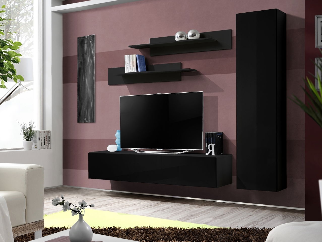 ZobrazitObývací stěna Ferryhill 23 ZZ FY G1 o výšce 190 cm a hloubce 40 cm v černém a lesklém provedení je určena pro milovníky moderního designu. Díky uchycení na stěnu vytváří dojem volně visícího nábytku, což zajišťuje snadnou přístupnost prostoru pod stěnou. Ve skříňce pro TV je tři přihrádky, které jsou doplněny o tři poličky se skříňkami. Poličky na zeď lze umístit dle potřeby a maximální nosnost jedné poličky je 10 kg. Všechna dvířka mají důmyslný PUSH-CLICK systém, který zajišťuje snadné otevírání a zavírání. Přední strany mají vysoký lesk. V balení jsou tři balíky o rozměrech: 177 x 42 x 8 cm/29 kg, 175 x 41 x 8 cm/29 kg a 112 x 23 x 9 cm/9 kg.