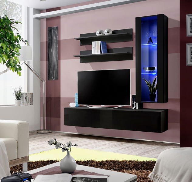 ZobrazitObývací stěna Ferryhill 23 ZZ FY H2 (s osvětlením) o výšce 190 cm a hloubce 40 cm, v černé a lesklé černé barvě, je navržena pro ty, kteří se rádi obklopují moderními a čistými liniemi. Všechny její prvky jsou uchyceny na zeď, čímž vzniká dojem, že se stěna vznáší ve vzduchu a prostor pod ní je tak snadno přístupný. V TV skříňce jsou tři přihrádky a vitrína má dvě skleněné poličky s LED osvětlením. Samostatné poličky na zeď můžete umístit podle sebe, ale maximálně je můžete zatížit 10 kg (kus). Všechna dvířka se otevírají pomocí důmyslného PUSH-CLICK systému, kde stačí jemně zatlačit na dvířka pro otevření nebo zavření. Fronty mají vysoký PCV lesk. Rozměry jsou následující: TV stolek: 30 x 160 x 40 cm, vitrína: 126 x 40 x 29 cm, a polička: 60 x 120 x 20 cm. Rozměry balíku 1 jsou 141x43x8 cm/25 kg, balíku č. 1 2 jsou 175x41x8 cm/29 kg a balíku č.j. 3 jsou 112x23x9 cm/9 kg.