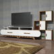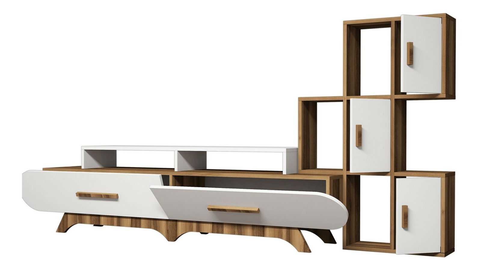 ZobrazitObývací stěna - Flaire (Ořech + Bílá) je skvělým doplňkem pro váš obývací pokoj. S výškou 50 cm, šířkou 205 cm a hloubkou 36 cm poskytuje dostatek úložného prostoru pro vaše věci. Tato stěna kombinuje přírodní ořechový odstín a elegantní bílou barvu a vytváří moderní a stylový vzhled. S různými oddělenými prostory, policemi a skříňkami, tato stěna vám umožní udržet váš obývací pokoj uklizený a dobře organizovaný. Ať se jedná o knihy, dekorace nebo elektroniku, Flaire vám poskytne dostatek místa, abyste si mohli vychutnávat své oblíbené věci. Získejte tuto praktickou a působivou obývací stěnu a vytvořte si útulné a stylové prostředí ve svém domově.