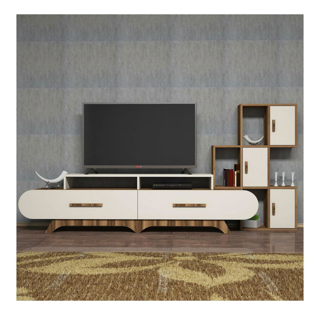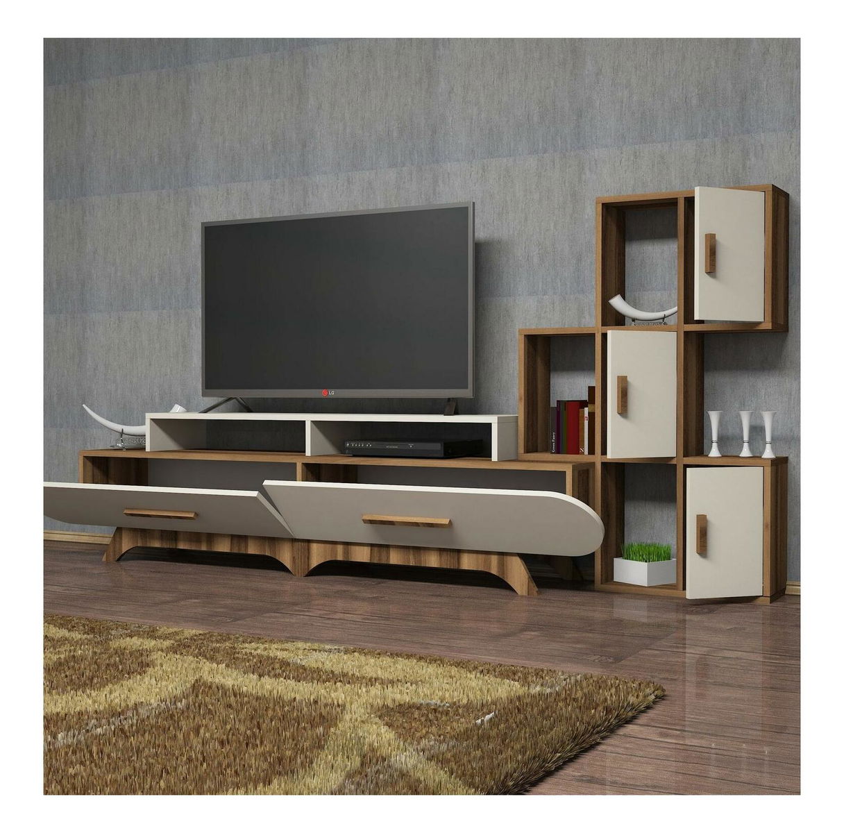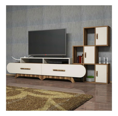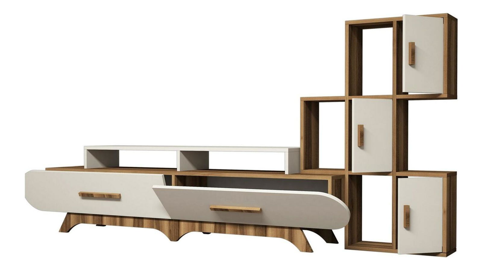 tloušťka: 18 mm, TV jednotka: šířka: 205 cm, výška: 50 cm, hloubka: 36,8 cm, velikost TV police: šířka: 130 cm, výška: 11 cm, hloubka: 30 cm, nástěnná police: šířka: 75 cm, výška: 112,6 cm, hloubka: 20 cm