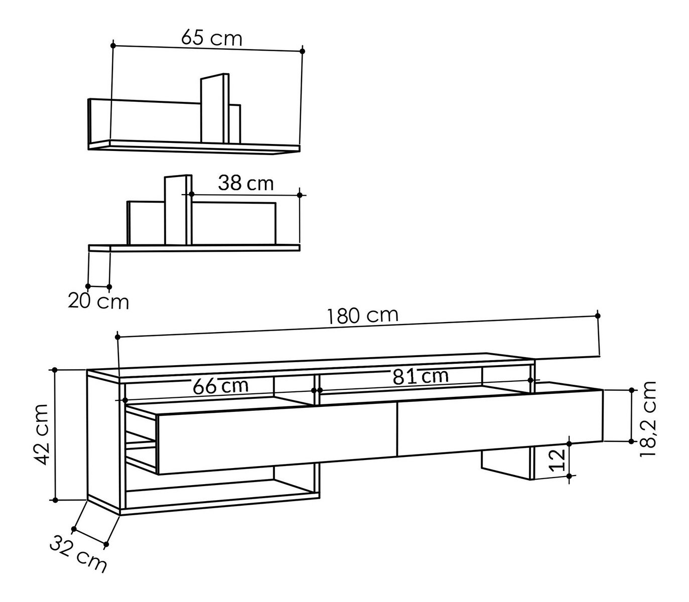TV skříňka rozměry: šířka: 180 cm výška: 42 cm hloubka: 32 cm