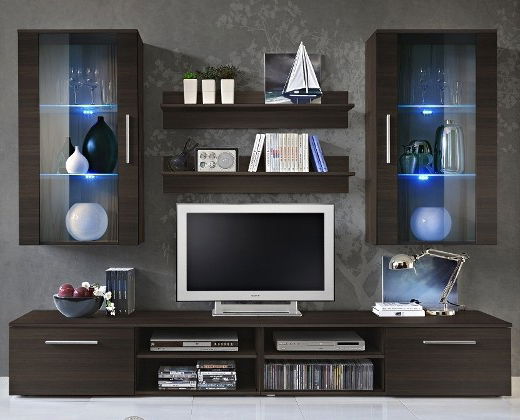 Obývací stěna Galina G zaujme moderním designem a jednoduchostí. Dvě TV skříňky, dvě vitríny a dvě poličky, to je to, co Vám tato obývací stěna nabízí. TV skříňka má jednu část uzavřenou dvířky a druhou otevřenou, pro umístění audio a video příslušenství. Vitríny mají prosklená dvířka a dvě skleněné poličky, které jsou efektně podsvíceny LED osvětlením. Dvě samostatné poličky na stěnu už jen dotvářejí celkovou sestavu. Skleněné části jsou vyrobeny z tvrzeného skla.