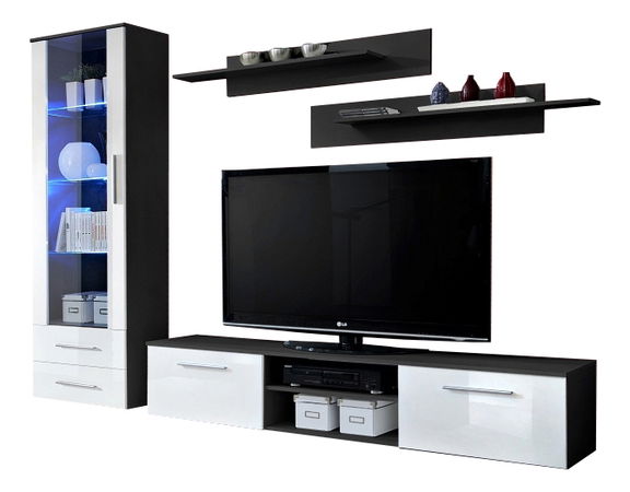 Obývací stěna Gorefield 23 EMWH GA s osvětlením v odstínu Wenge + Lesk bílý je skvělým doplňkem pro menší obývací pokoje. Svou jednoduchostí a designem se hodí pro každý interiér. TV skříňka se dvěma dvířky a elegantními úchyty má otevřený prostor pro audio/video příslušenství. Vysoká vitrína má zčásti prosklené dveře, dvě zásuvky a tři skleněné poličky s LED osvětlením. Máte k dispozici také samostatné poličky na zeď pro další odkládací prostor. Prosklené části jsou z tvrzeného skla. Vitrína je vysoká 190 cm, široká 60 cm a hluboká 40 cm. TV skříňka má rozměry 37 x 180 x 45 cm, polička 20 x 100-120 x 20 cm. Dvířka na vitríně jsou univerzální, s možností montáže na obou stranách a volby levého či pravého otevírání. Rozměry balíků: čj. 1 - 112x23x9 cm/9 kg. 2 - 189x48x12 cm/30 kg. 3 - 67x35x3 cm/4 kg. 4 - 198x65x9 cm/37 kg. 5 - 156x65x3 cm/12 kg. 6 - 68x21x5 cm/3 kg.