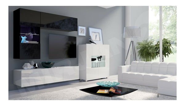 Obývací stěna III Badiani (Černý + Černý lesk + Bílá + Bílý lesk)