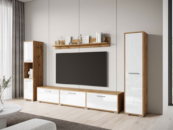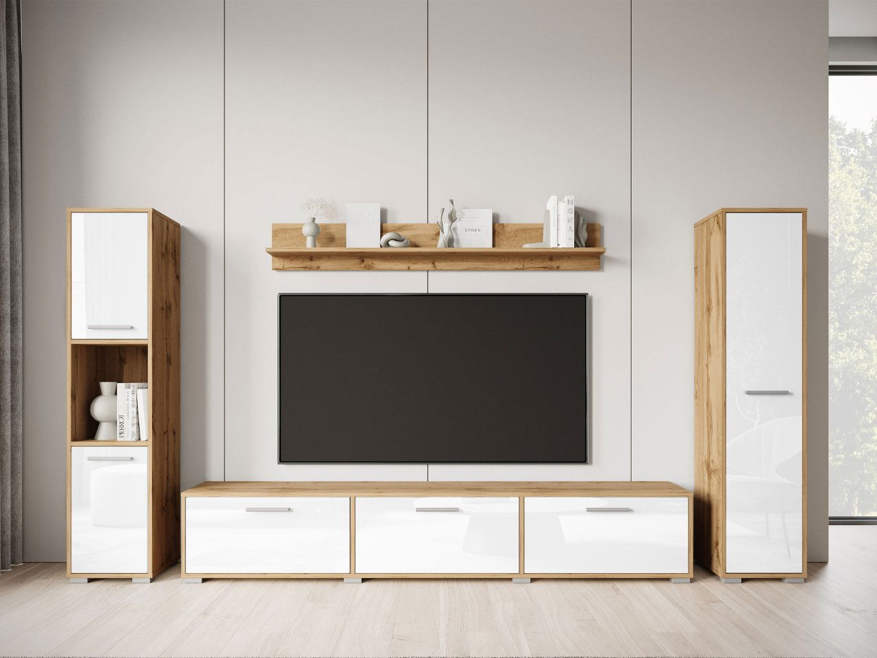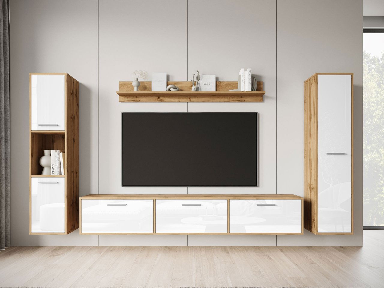 Obývací stěna Ikinra XL (dub wotan + lesk bílý)