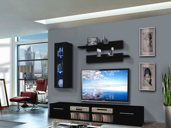 Jednoduchý a moderní design obývací stěny je doplněn o systém push-click, který je využit při vitríně. Obývací stěna je doplněna o LED podsvícení.
