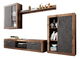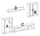 Stylová obývací stěna Jean složená ze čtyř prvků. Součástí je závěsná vitrína, polička, TV stolek/skříňka a komoda.