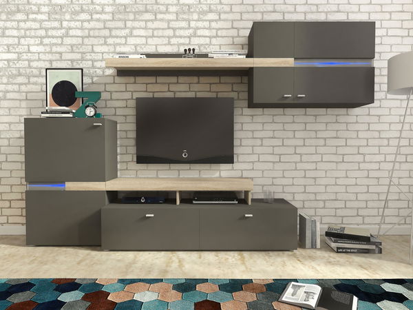 Obývací stěna Joren (grafit + dub sonoma)