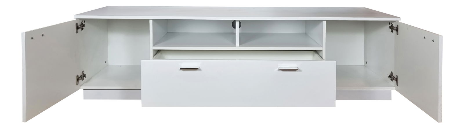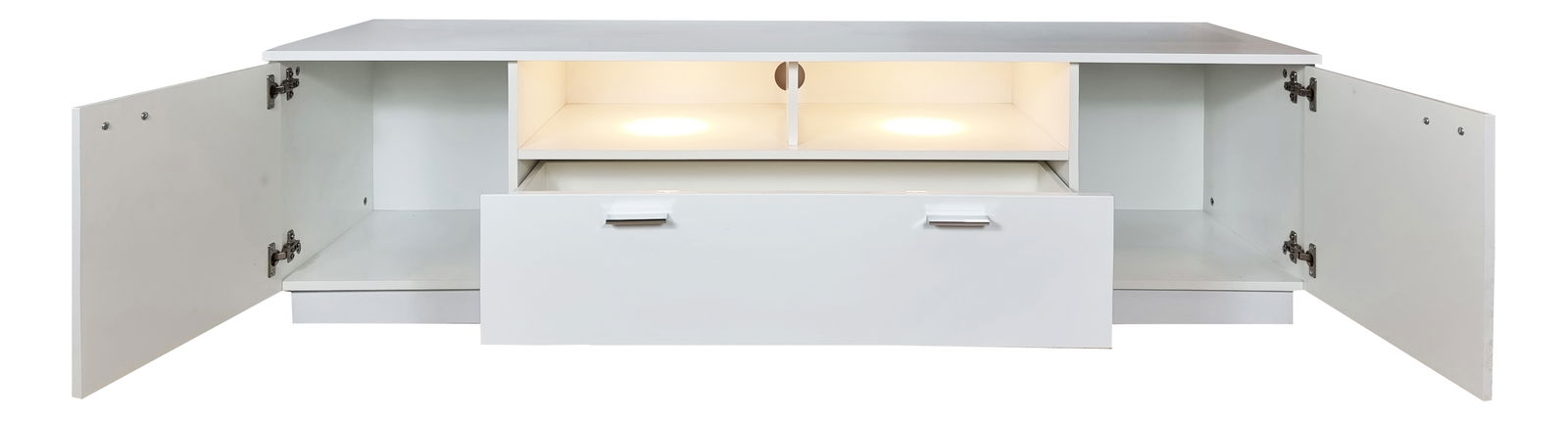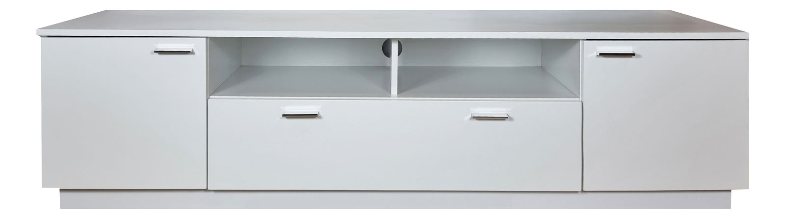 - TV stolku/skříňky o rozměrech (VxŠxH): 45x167x46cm, vestavěným LED podsvícením, předpřipraveným otvorem na kabely pro audio/video, dvěma skříňkami a jedním šuplíkem<