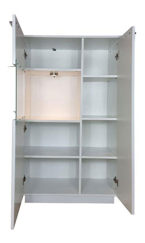 - Vitríny o rozměrech (VxŠxH): 123x69,5x38cm, vestavěným LED osvětlením v prosklené části a šesti policemi