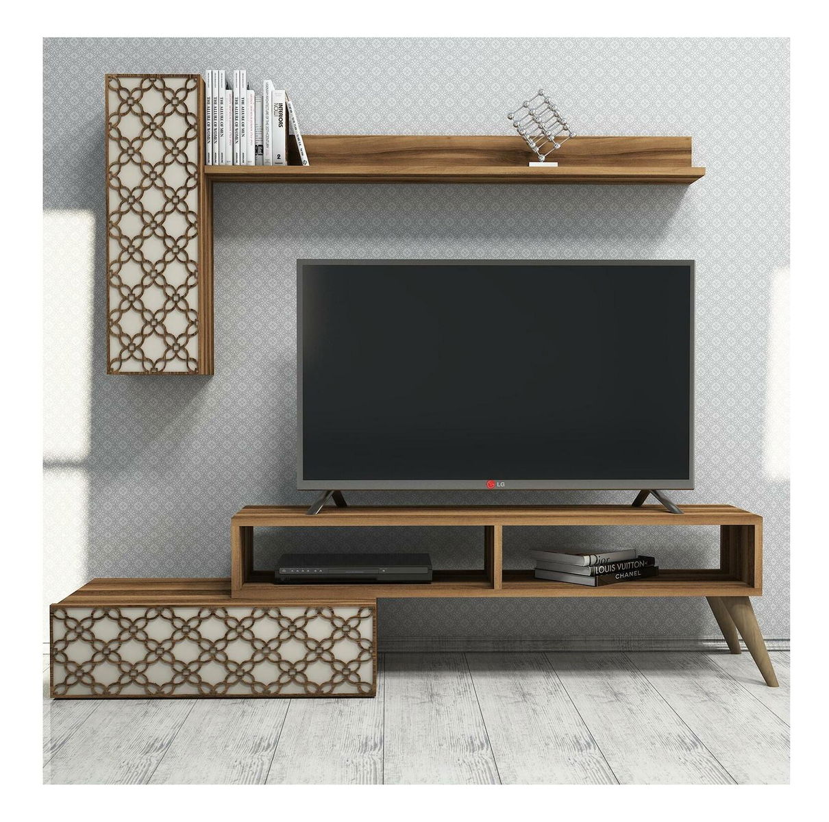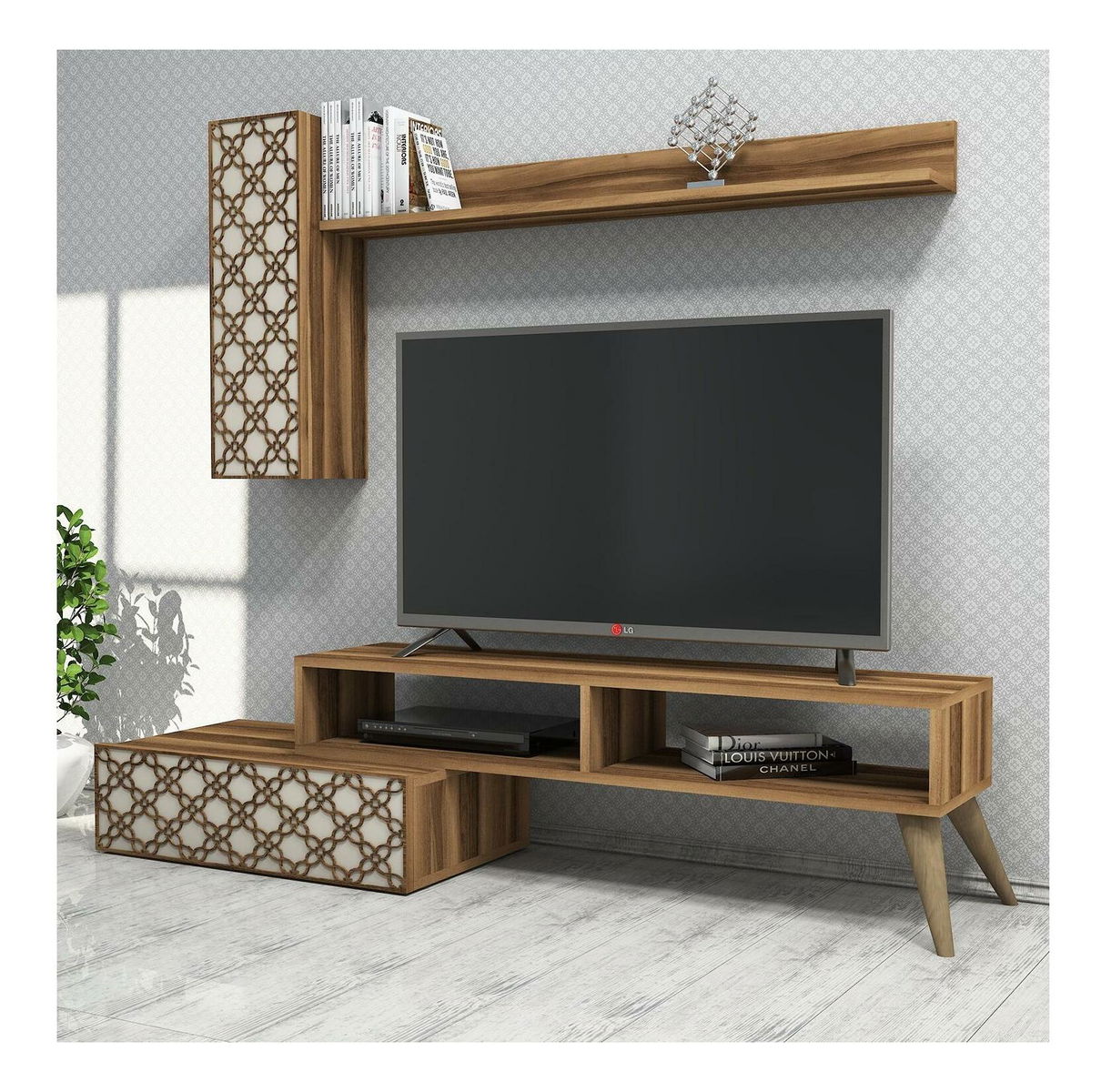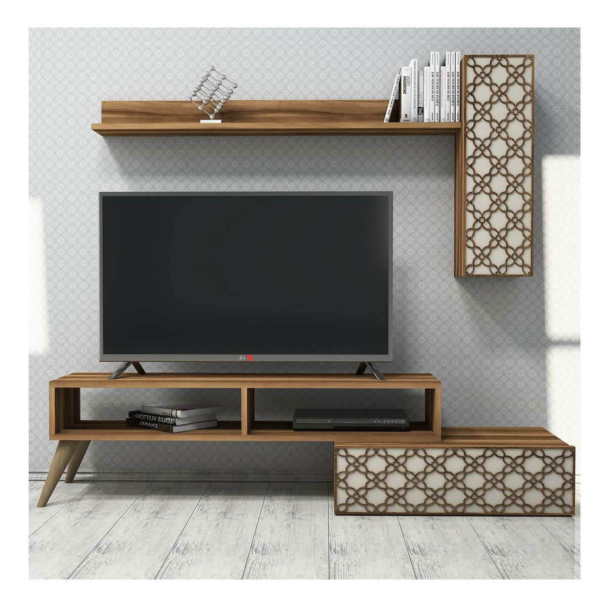 Obývací stěna Komite (ořech + krémová)