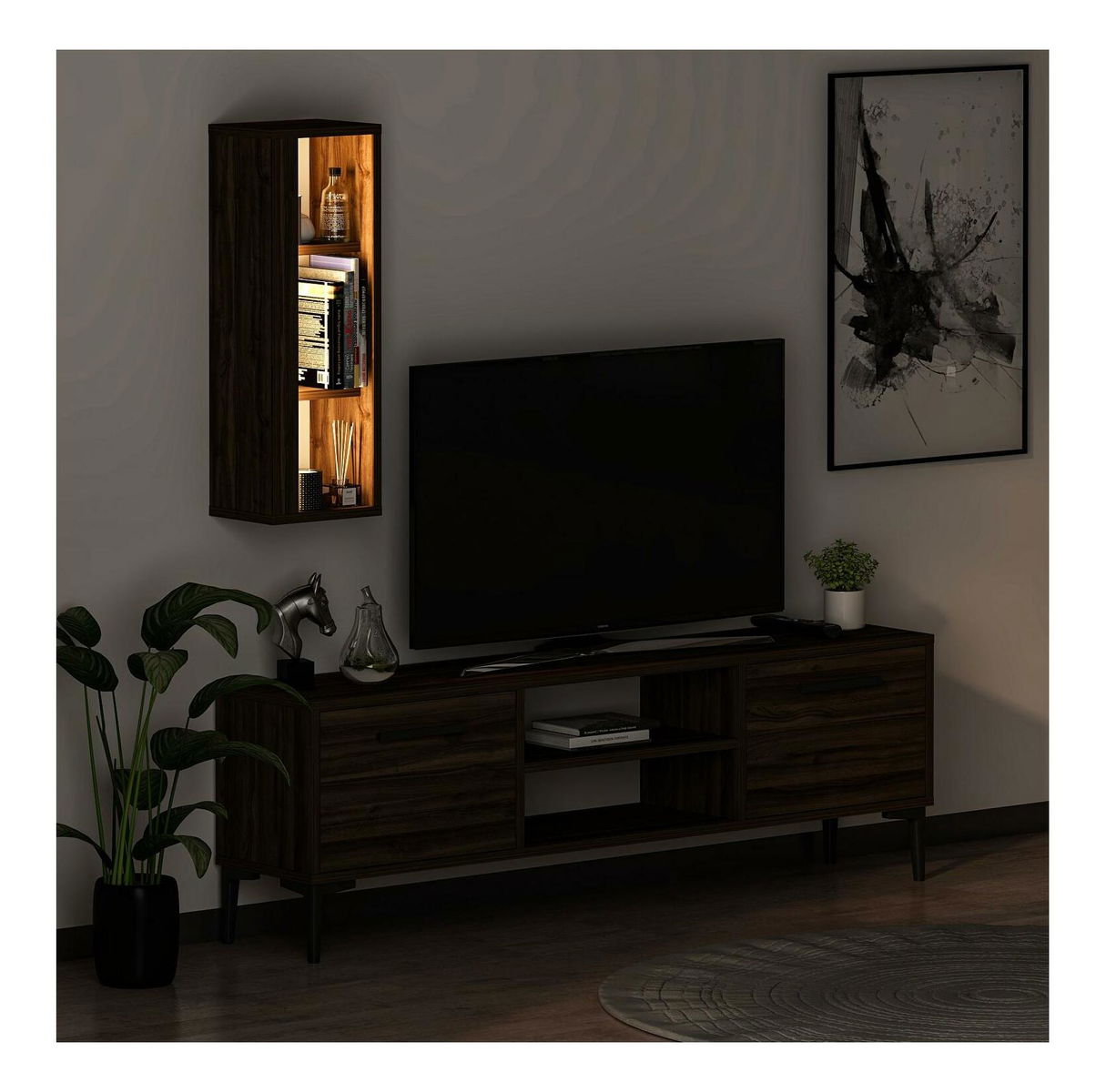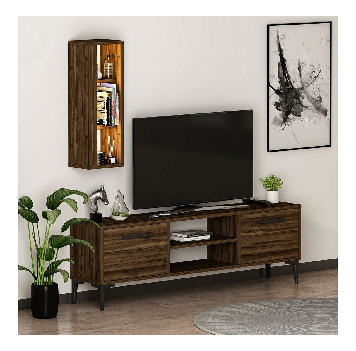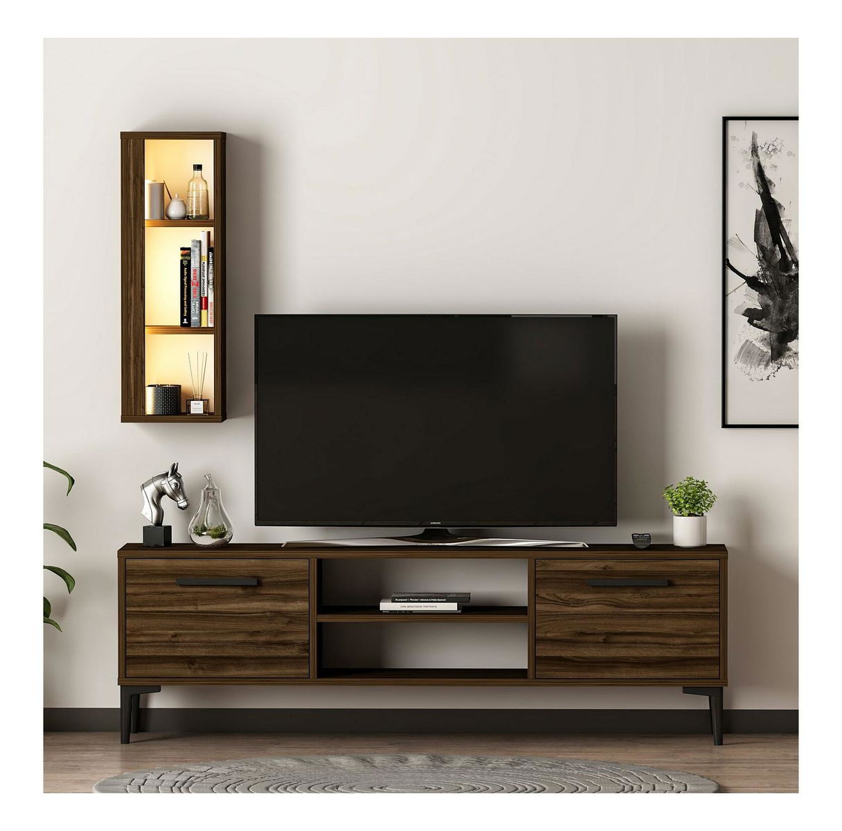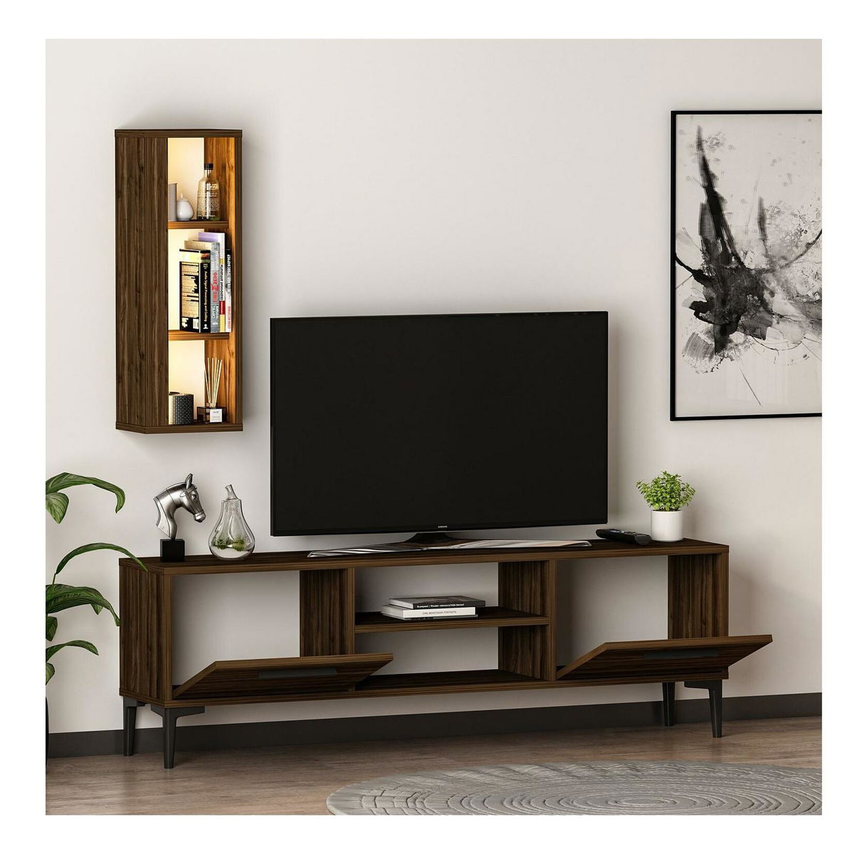 Obývací stěna Kuvuni 1 (ořech) (s osvětlením)
